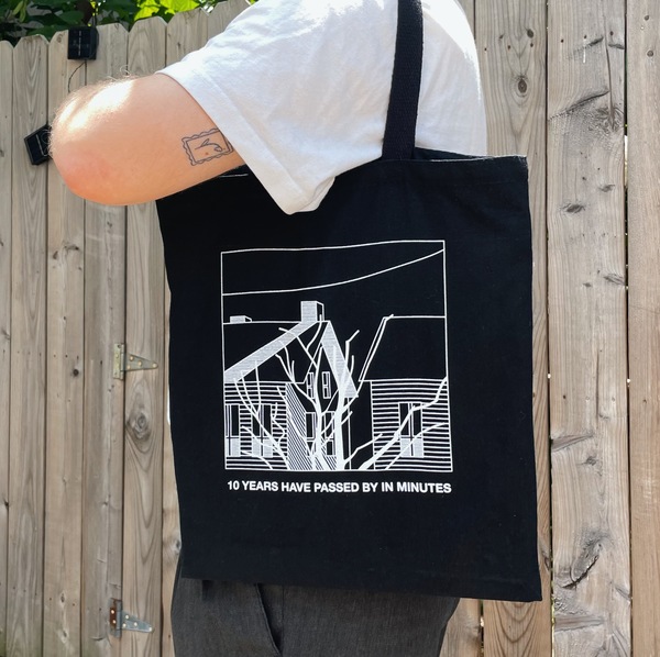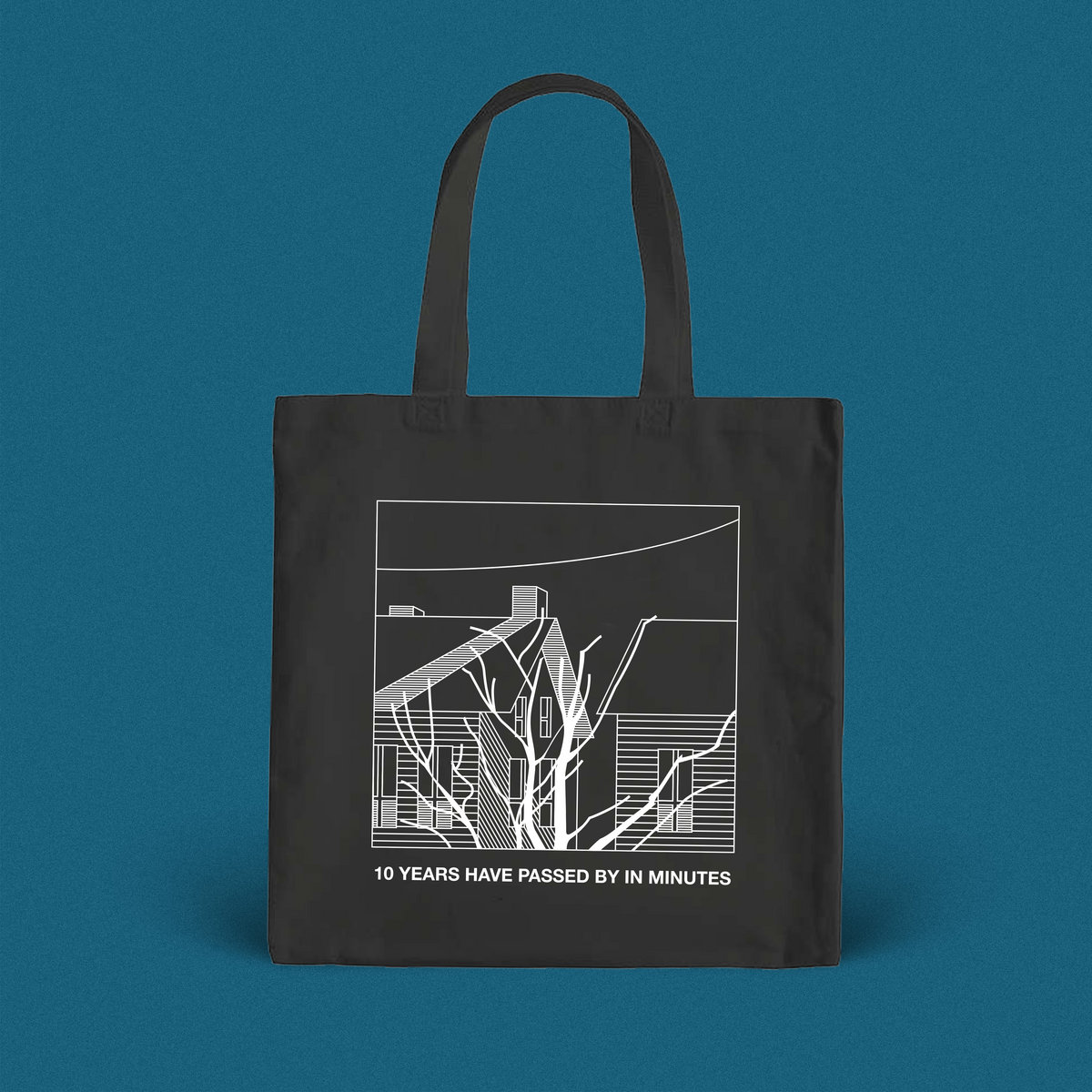 16" H x 14" W, 100% Cotton Black Tote Bag. Features a reimagined illustration of the original album artwork.